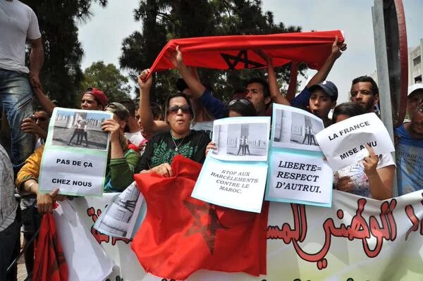 Moroccans protest against the controversial feminist group Femen in early June (Twitter/@Ozud_Media)