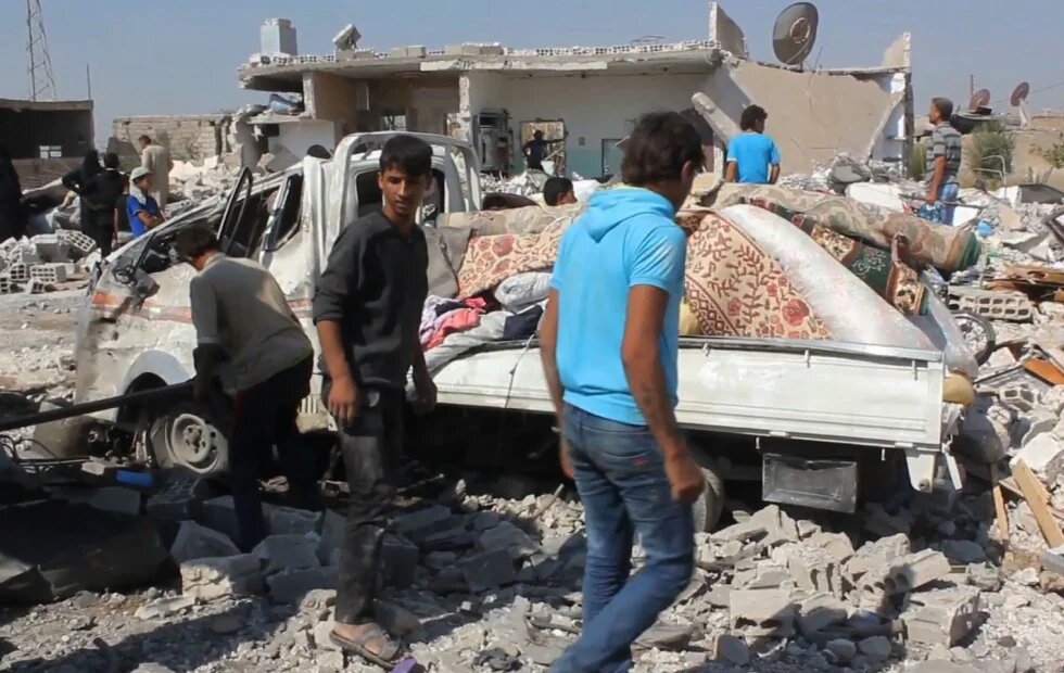 The bombardment, which left a mother and four children dead, is part of a renewed offensive by Syrian government forces who are pushing north from Damascus toward the rebel-held city of Aleppo near the Turkish border, according to the Syrian Observatory for Human Rights.