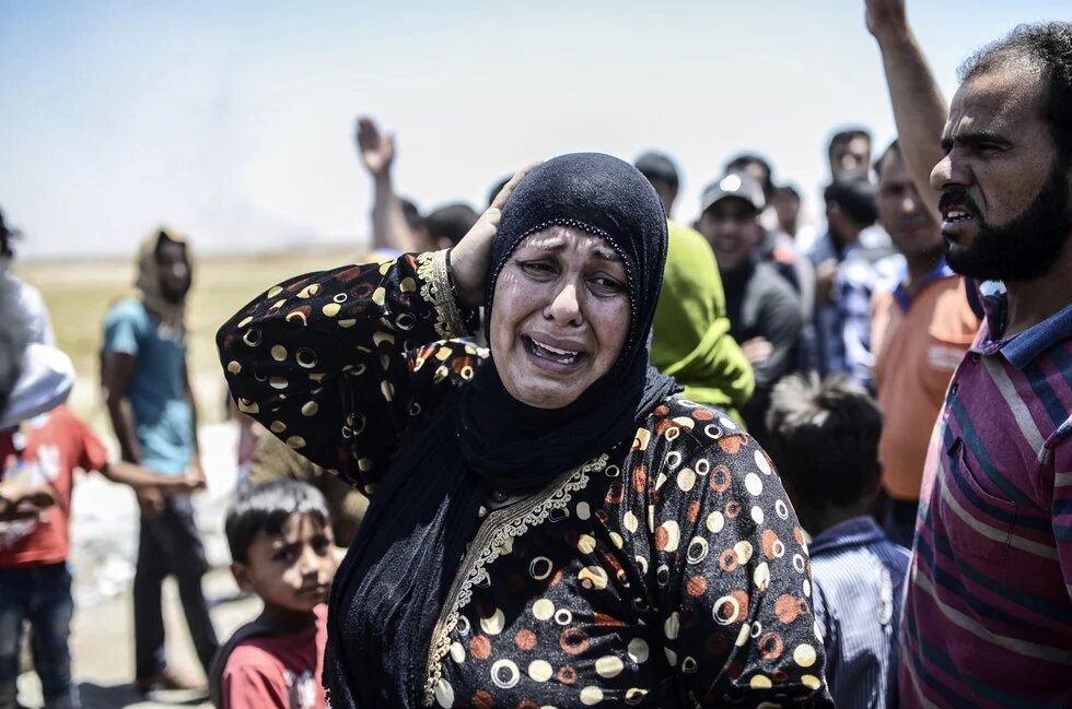 A Syrian woman cries after an airstrike hit the eastern part of the Syrian town of Tal Abyad (AFP)