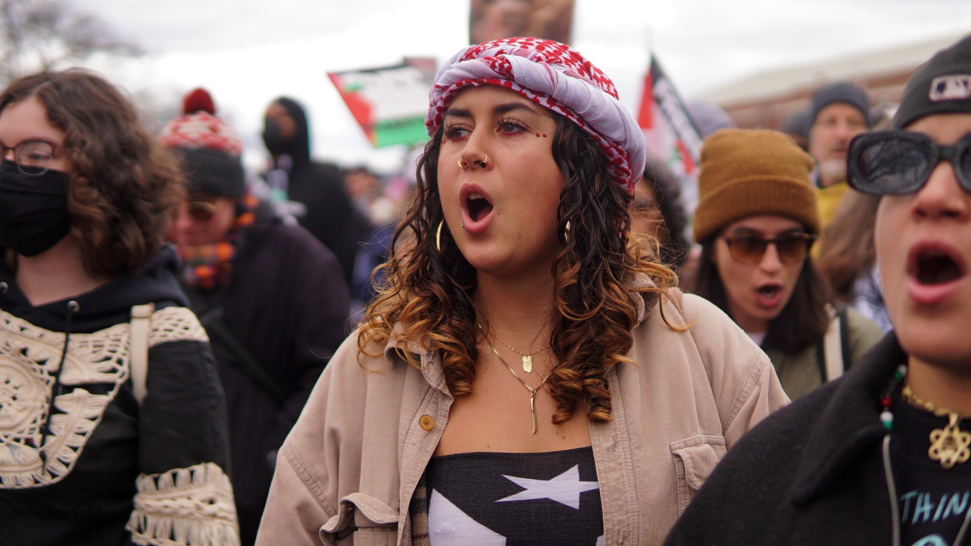 "Show your face, cowards!" pro-Israeli supporters screamed at those with their faces masked. "Terrorists!" others screamed.