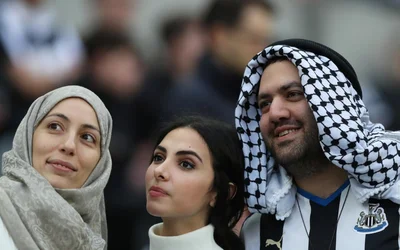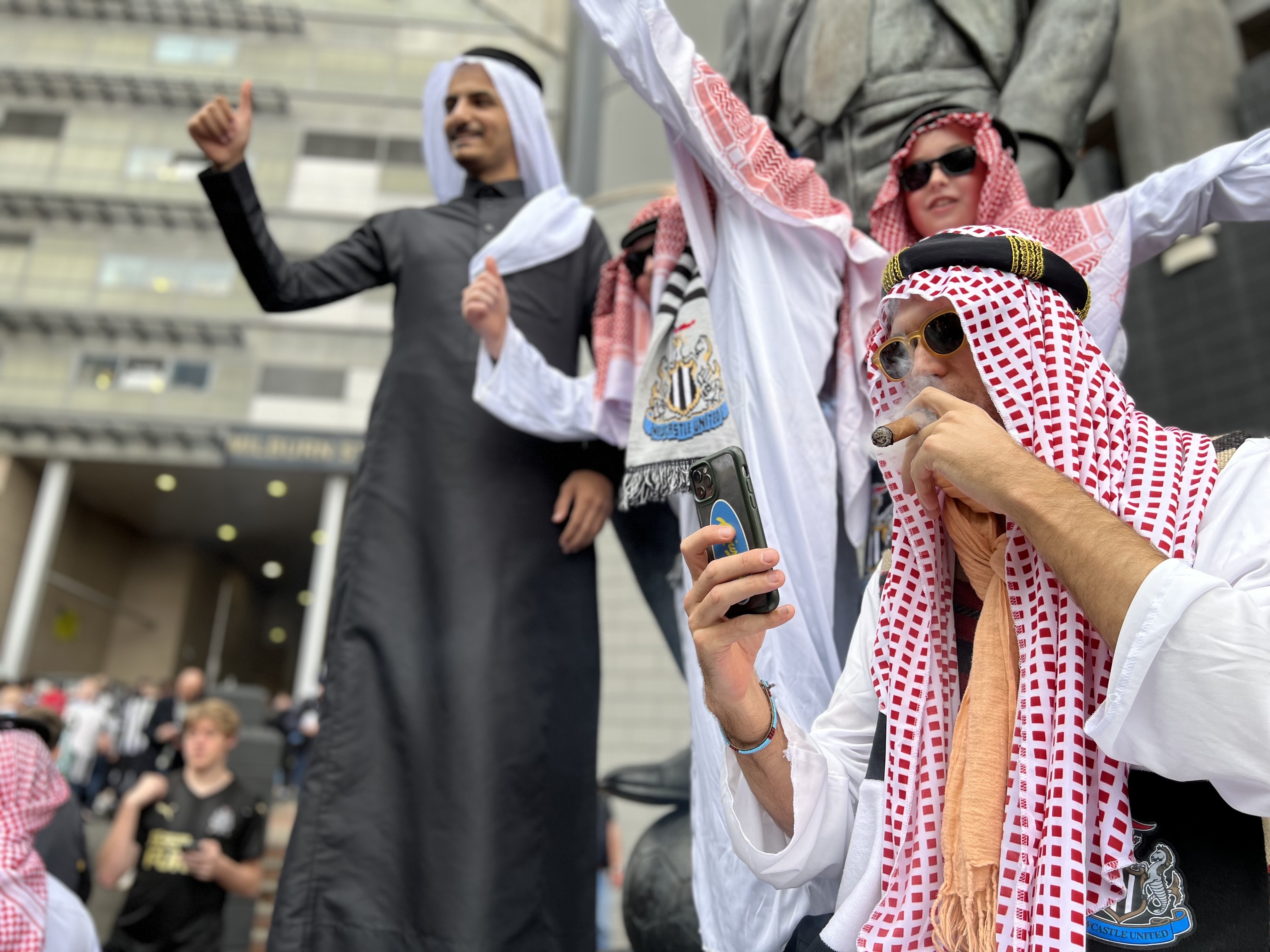 Thousands of supporters wore keffiyehs - or, in many cases, tea towels - and waved Saudi Arabia’s flag, as they welcomed their wealthy new Arabian Gulf owners. Some fans sang “we're rich as fuck” and joked “We're Saudis, we can afford anything”, while others threw around fake cash.