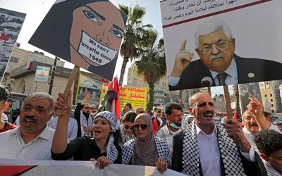 Hundreds of Palestinians were demonstrating in Ramallah on Thursday afternoon, shouting "Leave, leave Abbas" and "The people want the downfall of the regime", with security forces beating protesters with batons and firing tear gas.