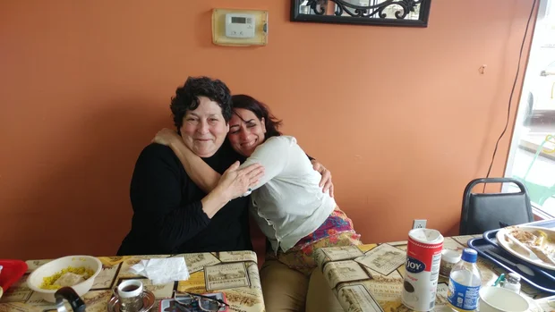 'This is what Muslim-Jewish solidarity looks like,' Elaine Cohen (L) said as she posed for a photo with Banafsheh Madaninejad (MEE/Ali Harb)