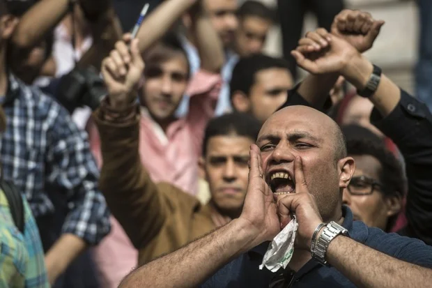 Egyptian journalists take part in a protest outside the Syndicate headquarters in Cairo on 3 May 2016 on the occasion of World Press Freedom day (AFP)