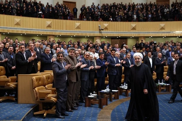 Iranian President Hassan Rouhani speaks about 'a new chapter in Iran's economy' after the JCPOA in 2016 (AFP)