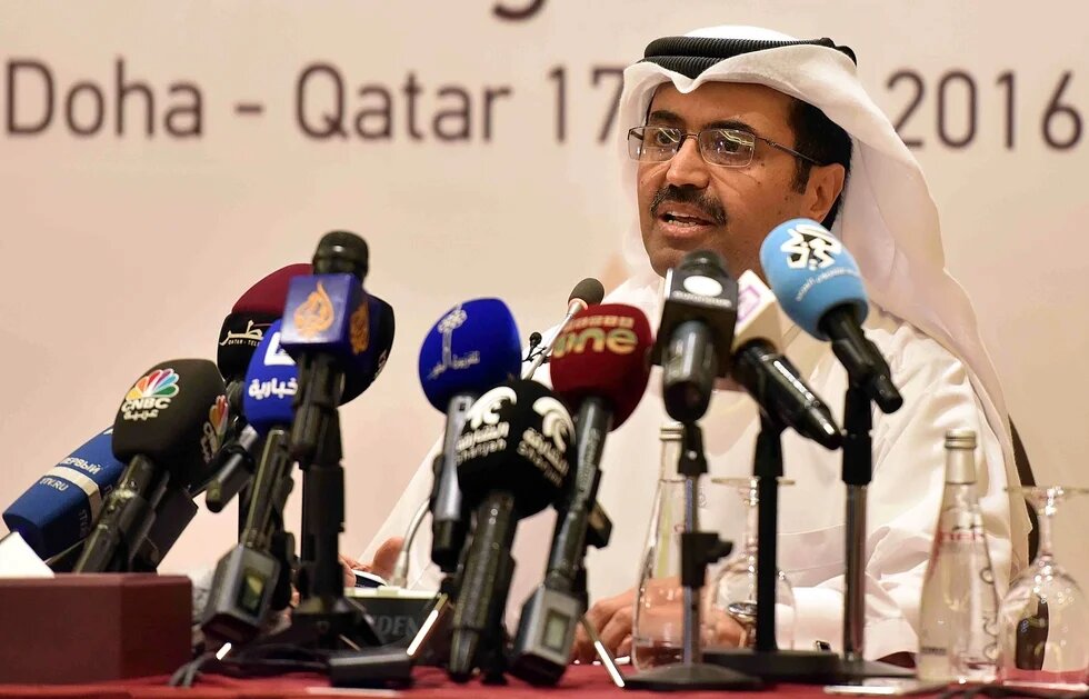 Qatar's Energy Minister Mohammed bin Saleh al-Sada speaks at meeting of major oil producing countries in Qatari capital Doha (AFP)