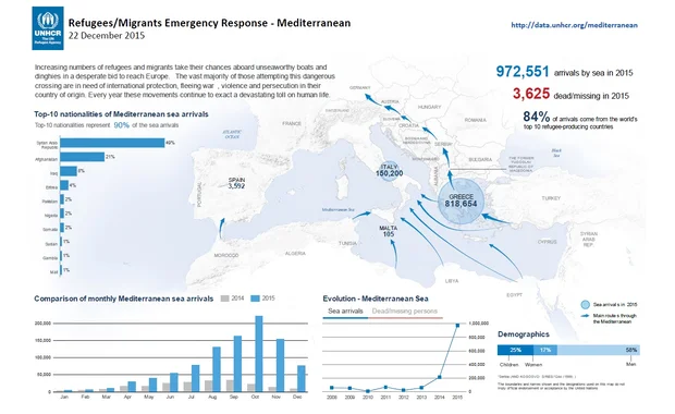 The joint study by the IOM and the UN's refugee agency, released on Tuesday, said 1,005,504 people had arrived through irregular means in Europe between 1 January and 21 December, the vast majority - 816,752 – of whom had arrived by sea in Greece.