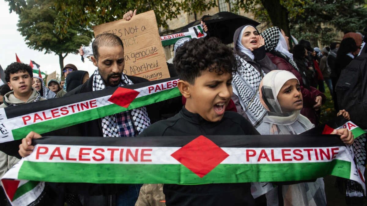 Residents of Detroit and the Arab Community of Dearborn march in support of Palestinians in Dearborn, Michigan, on 14 October 2023 (AFP)