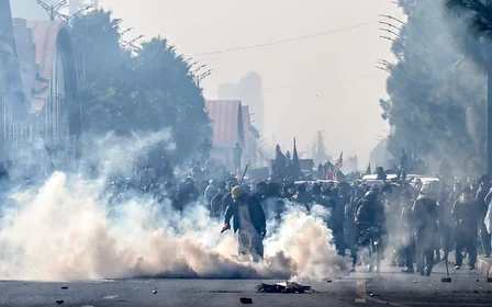 The demonstrators marched until they reached the D-Chowk area in the central part of the city. There, the protesters were pushed back by security forces who fired tear gas into the crowds.