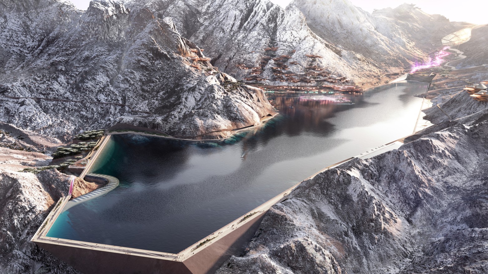 It is planned to include a 170km-long city built in a straight line (known as The Line), an eight-sided city that floats on water, and a ski resort with a "folded vertical village", amongst other grandiose schemes.
