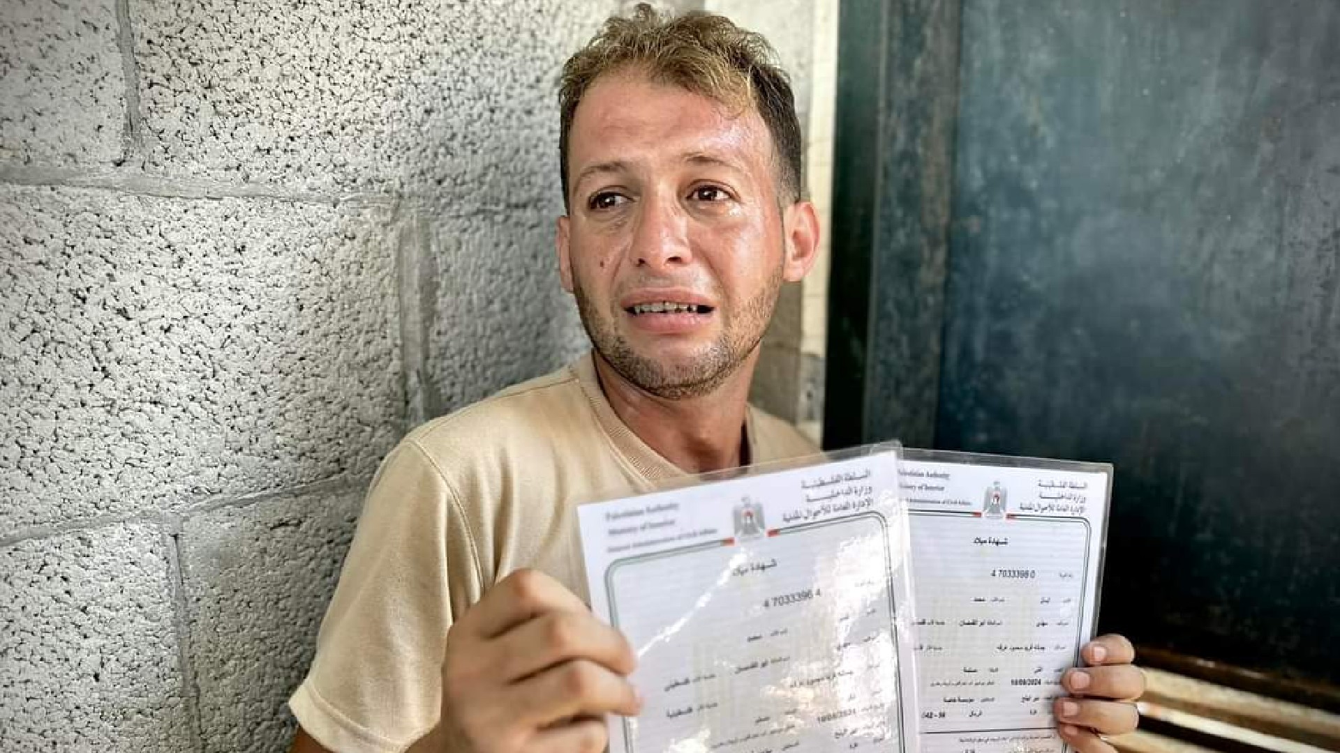 Muhammad Abu al-Qumsan was on his way to register his newborn twins' births, when an Israeli strike killed them both, as well as his wife and mother-in-law.