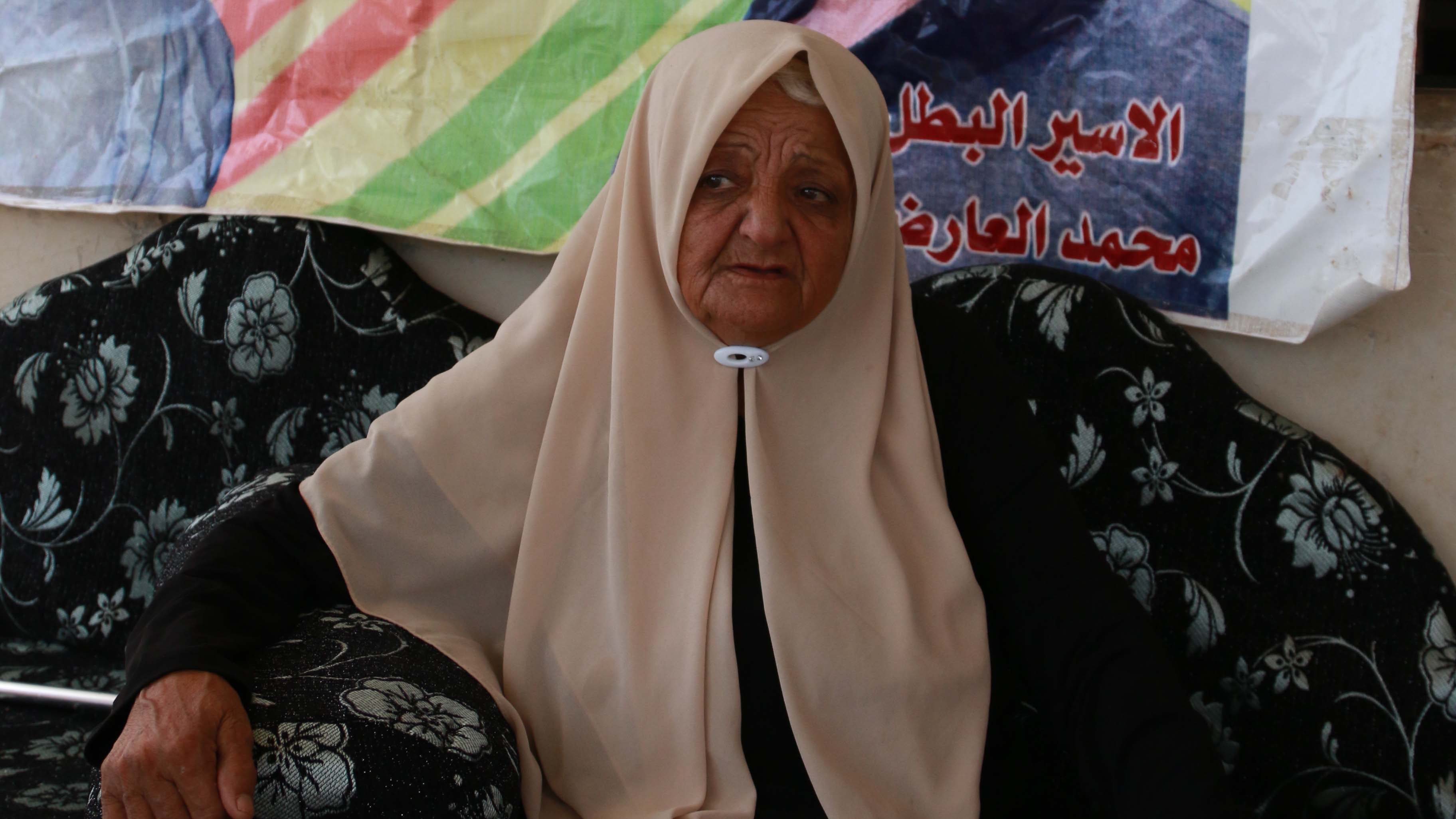Subhia Ardah, the mother of rearrested prisoner Mohamed Qassem Ardah, says she felt pain in her heart when he was captured (MEE/Shatha Hanaysha)