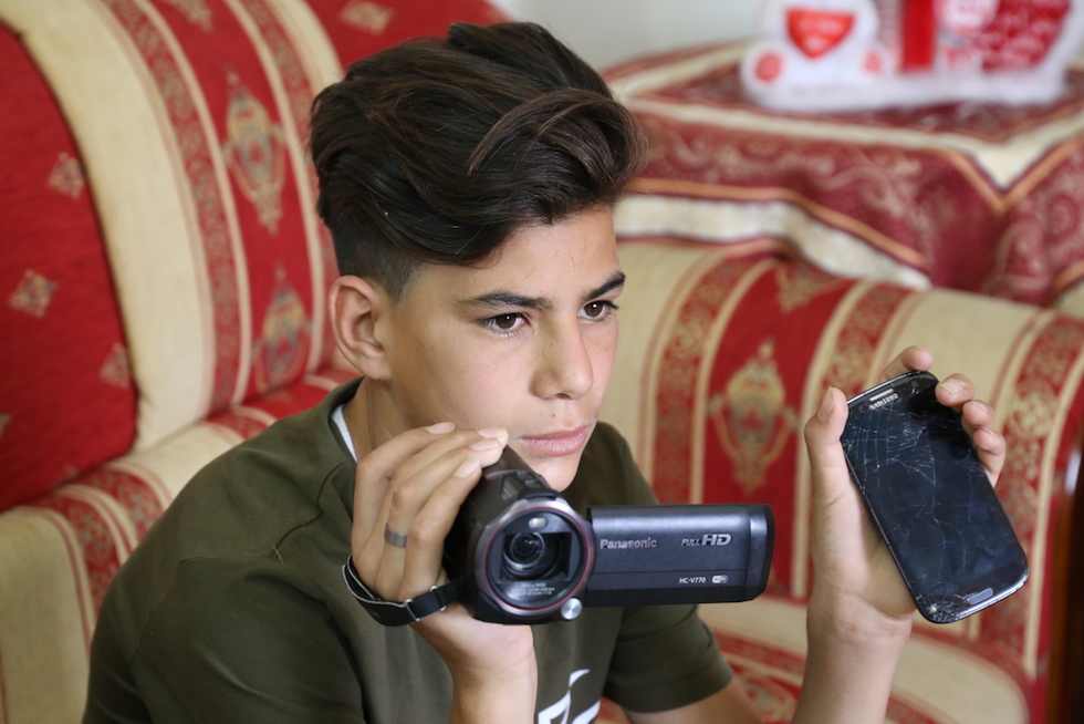 Pointing to the cameras and shattered phone in his son Ameer's hand, Jaber said defiantly: “They have their guns which they say they use to protect their people. But we have our cameras, which we use to protect our people.”