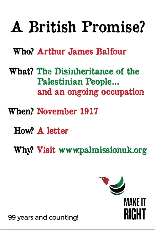 Mission of Palestine's poster marking the 99th anniversary of Balfour declaration