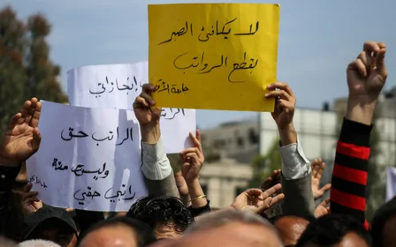 This week's protests come more than a month since the Palestinian Authority cut in half the salaries of its estimated 50,000 employees in the Gaza Strip without warning.