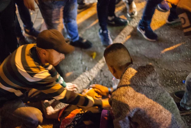 About 10 people were taken to hospital, where they had their identification documents confiscated by police.
