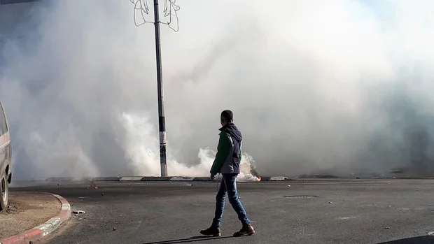 A Palestinian Red Crescent Society spokesperson told MEE that 12 people had been injured by tear gas and rubber-coated steel bullets in Bethlehem by mid-afternoon. Meanwhile, protesters, the majority of them young boys and men, erected a barricade blocking the road and threw stones in the direction of an army base north of Bethlehem.