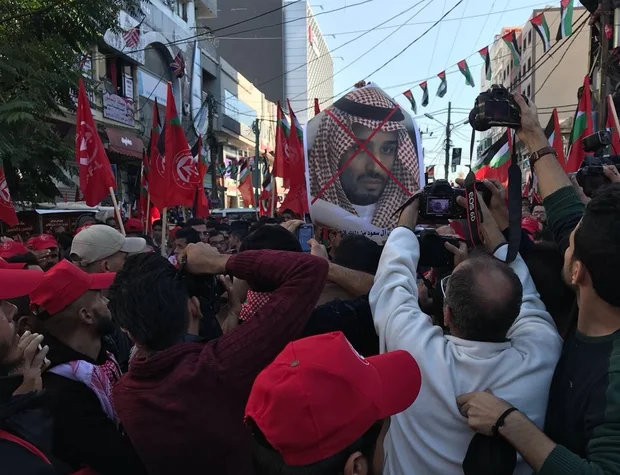 PFLP supporters carried placards criticising Trump and Saudi Crown Prince Mohammed bin Salman, who has been seen as moving Saudi Arabia closer to Israel.