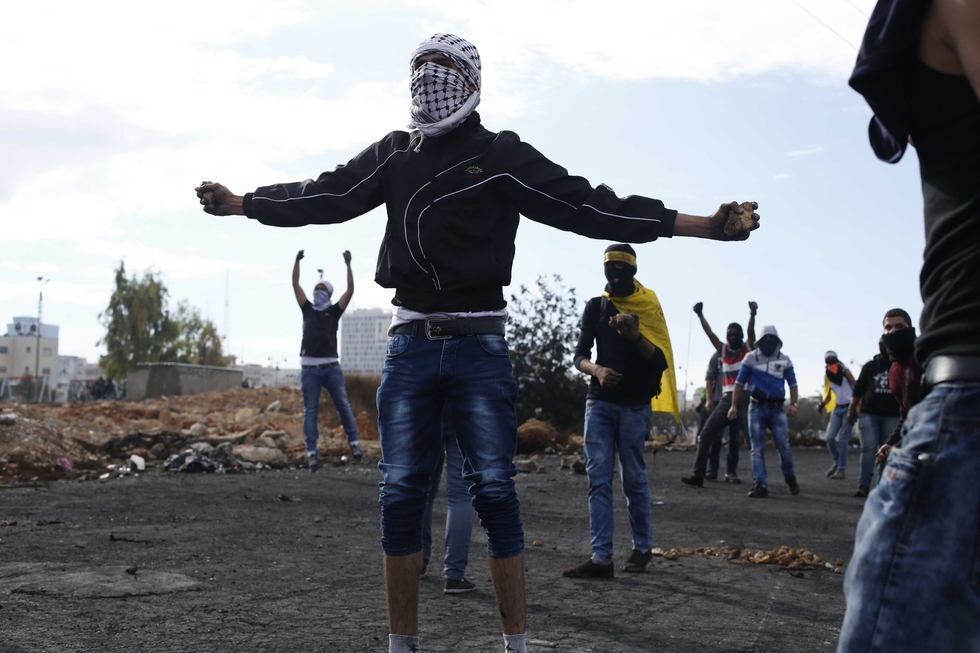 Palestinian students of the Birzeit University clash with Israeli security forces at the northern entrance of the West Bank town of Al-Bireh (AFP)
