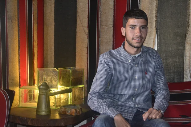 Tariq Rabea' sits in a Ramallah cafe talking about student politics at his university (MEE/Rori Donaghy)