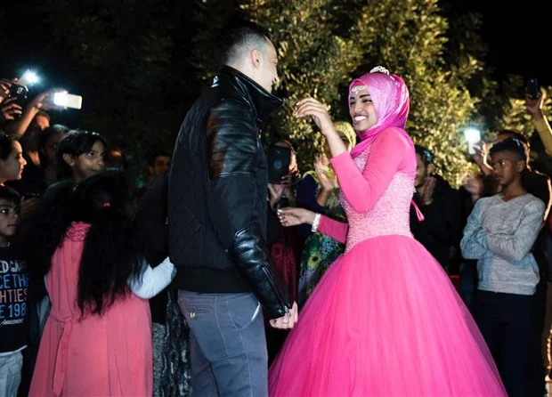 Lula, dressed in a pink long-sleeved dress and matching hijab, received guests along with her new fiancé and posed for pictures before the dancing began.