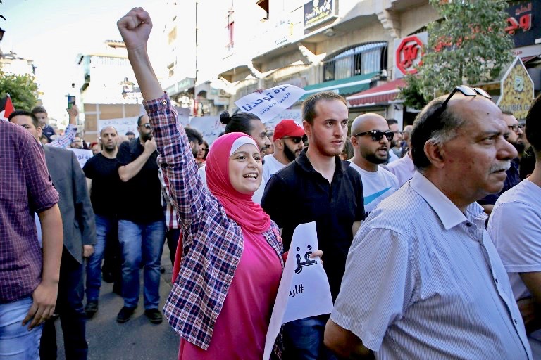 The rally on Saturday passed peacefully, unlike a protest on 13 June during which Palestinian security forces fired stun grenades and tear gas to disperse demonstrators. This time, policemen were seen handing out Palestinian flags to the protesters.