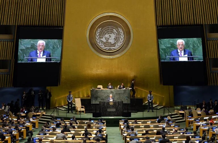 Palestinian President Mahmoud Abbas addresses the UN General Assembly in September (AFP)