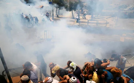 He said no stones were thrown at police before they arrived. "There was no intention to throw stones, and the youth had nothing in their hands. The police were throwing stun grenades at people as they ran away."