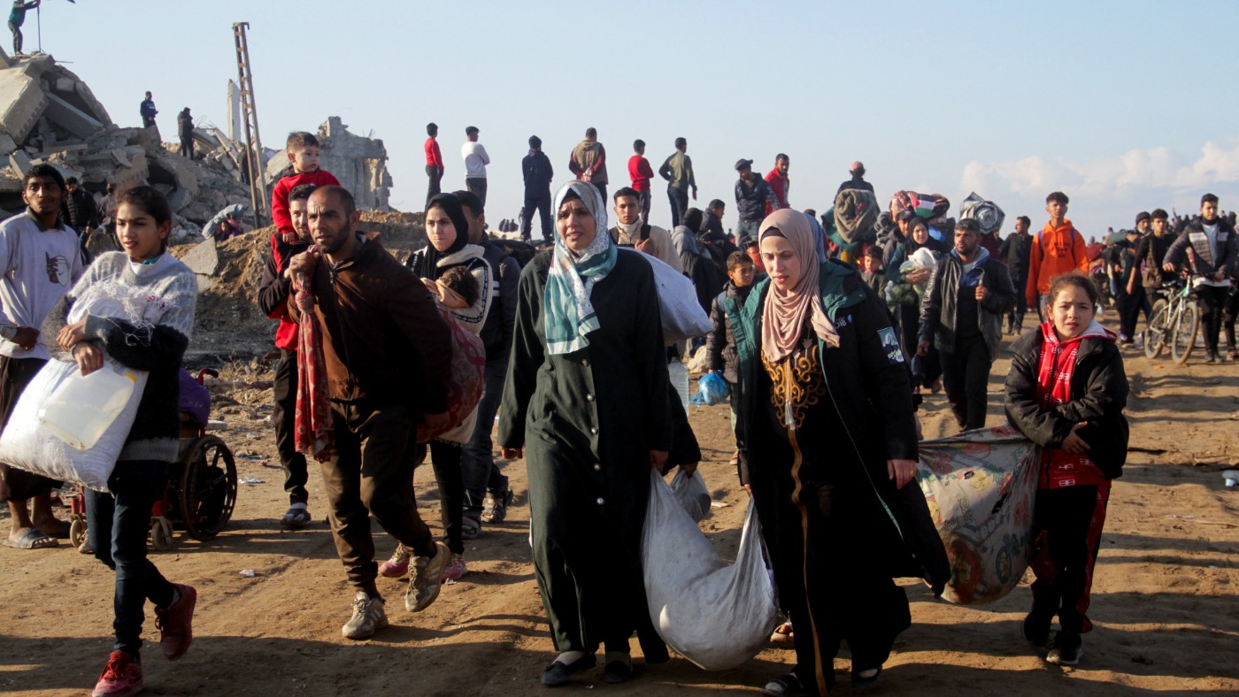 Displaced Palestinians make their way back to their homes in northern Gaza, 27 January 2025 (Mahmoud Issa/Reuters)