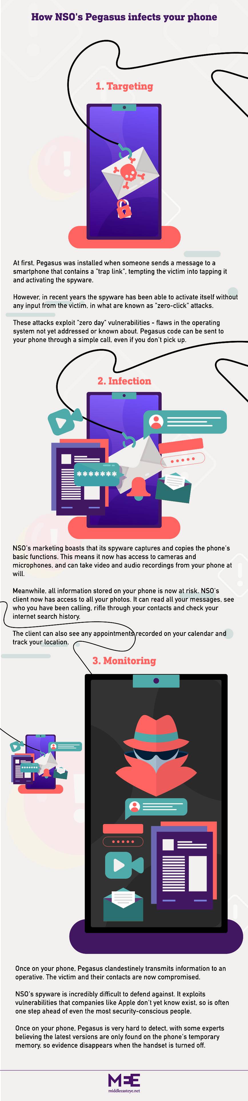 The latest allegations about the widespread use of Pegasus by government clients reported to include Saudi Arabia, the UAE, Bahrain and Morocco, follow the leaking of a list of mobile telephone numbers which appeared to be a list of about 50,000 individuals targeted by the software.