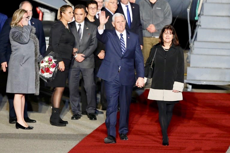 Pence, who flew into Tel Aviv's Ben-Gurion Airport from Jordan on a US military plane after visiting US troops on the Syrian border, was met by Israel's tourism minister, Yariv Levin. Pence, who travelled to the Middle East in spite of a US government shutdown, made no statement on arrival in Israel.