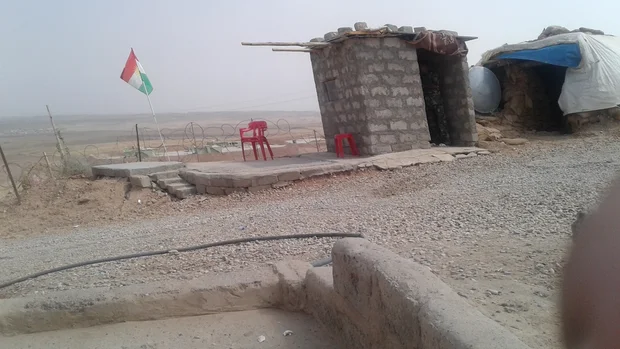 "Islamic State made it to just down there," said Nawaf, a 30-year-old Peshmerga, gesturing at houses at the bottom of the hill on which the camp sits.