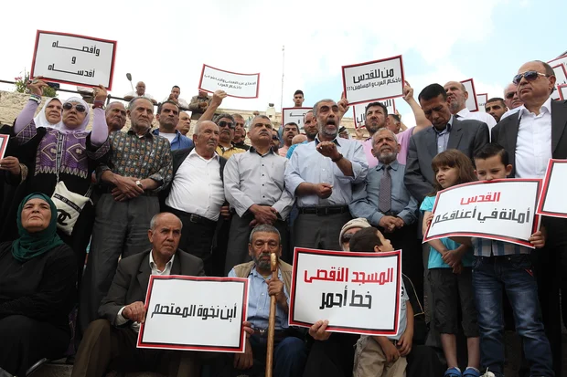 The march winded its way through the Old City where many more Palestinians joined the protest before reaching al-Aqsa mosque, where Palestinians prepared for traditional Friday prayers.