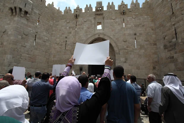 On Friday, protesters gathered outside Damascus Gate at the entrance to the Old City in occupied East Jerusalem to begin their march.