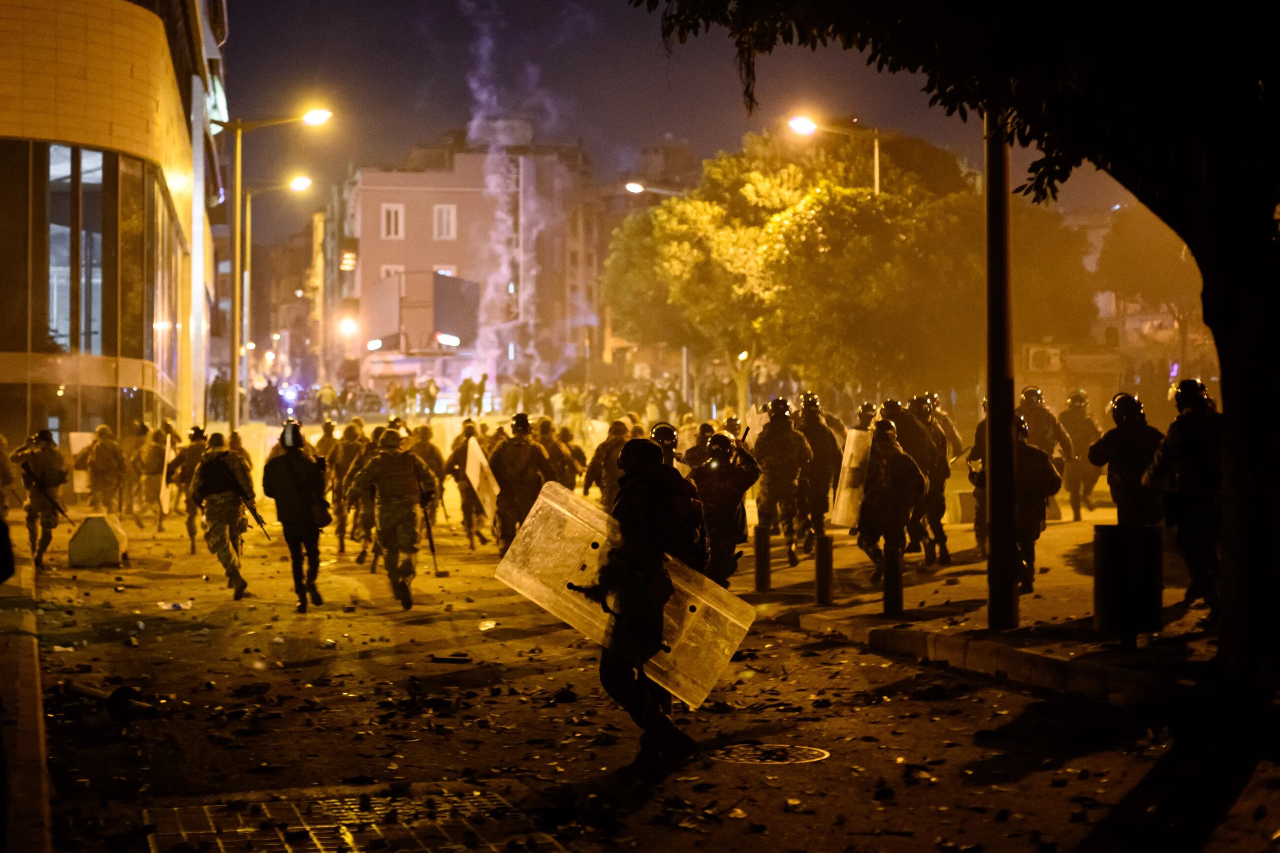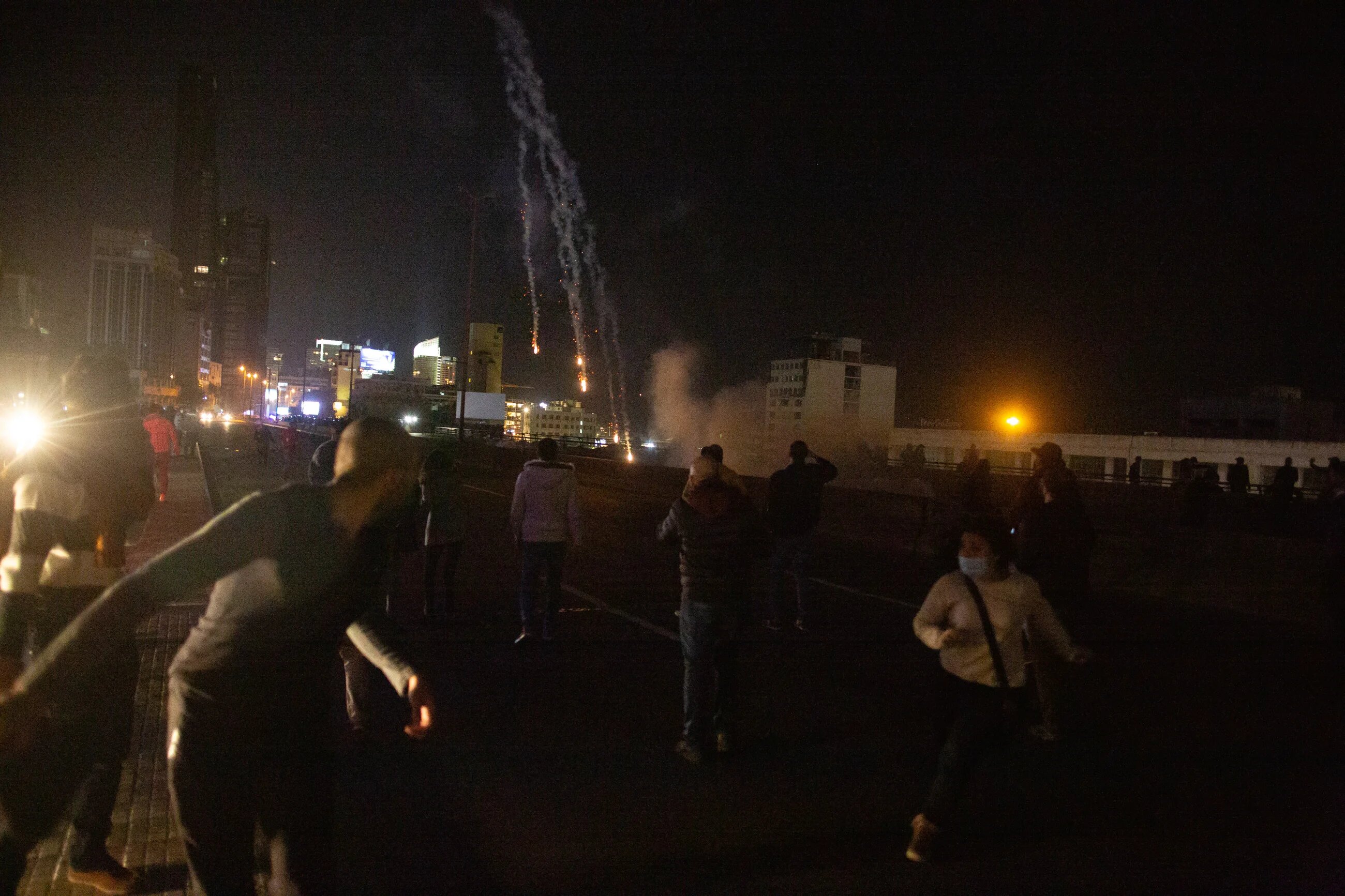 Security forces push up towards the Ring Bridge, a location that has taken on strategic importance since protests began two months ago. Internal Security Forces and the Lebanese Army eventually regained control of the Ring at 2:30 am on Tuesday morning (MEE/Finbar Anderson)
