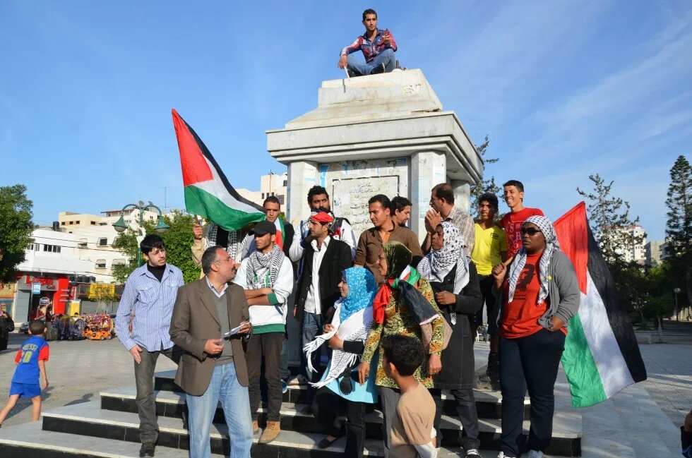 A group in a central square in Gaza City chanted “Unity, freedom, dignity and humanity" (Kate Shuttlesworth)