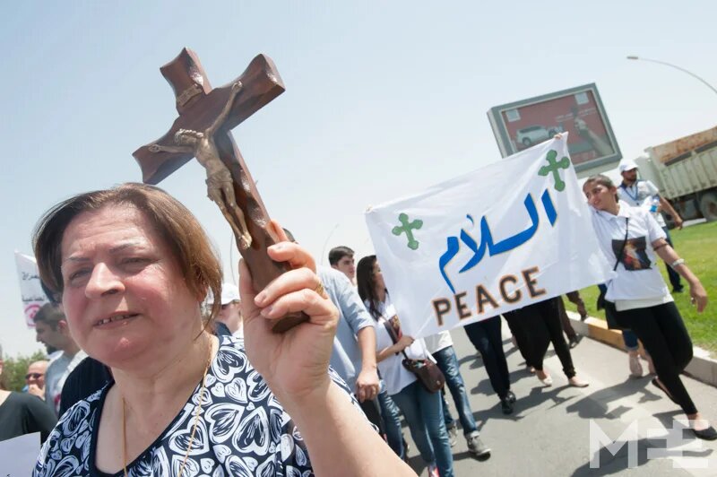 In late July, more than 1,200 Christians marched in a demonstration to the UN headquarters in Erbil during a visit by Secretary General Ban Ki-Moon. Many of those marching wore shirts or signs spray-painted with the Arabic letter “N” - for the word Nasrani meaning “Nazarene” or “Christian” - the symbol used by IS forces to mark Christian homes in Mosul. Christians weren’t the only ones marching. Leaders of Erbil’s Muslim community walked side by side with Chaldean Catholic and Orthodox clergy to demand an end to the violence.