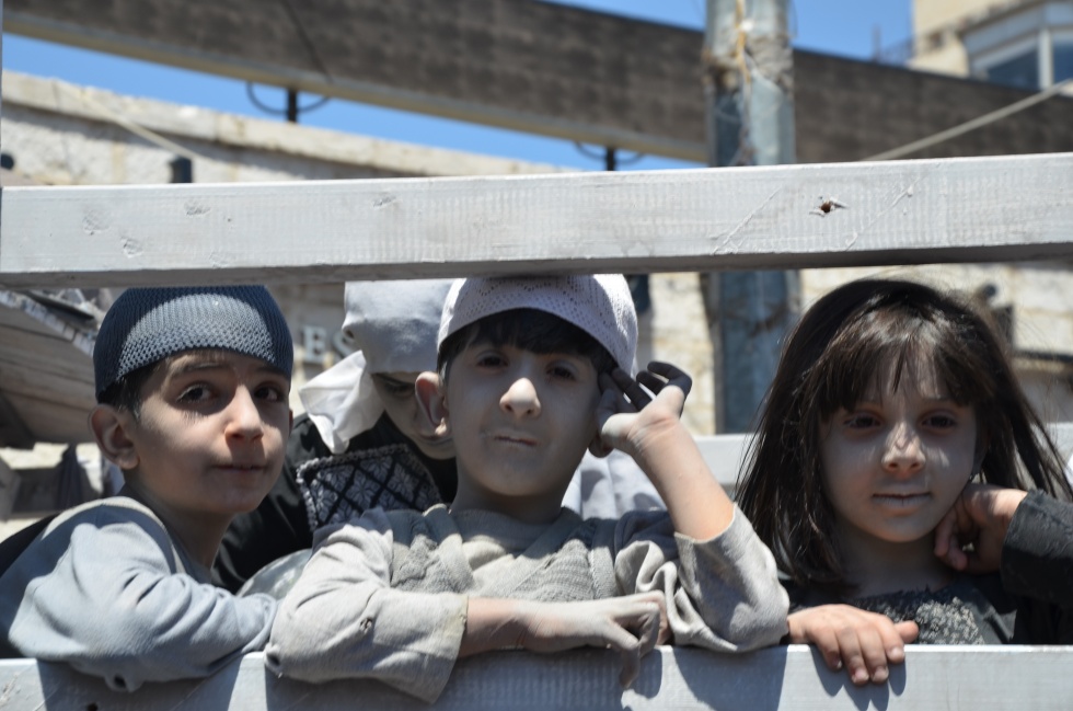Children with painted white faces mark Nakba Day in Palestine (MEE/Kate Shuttleworth)