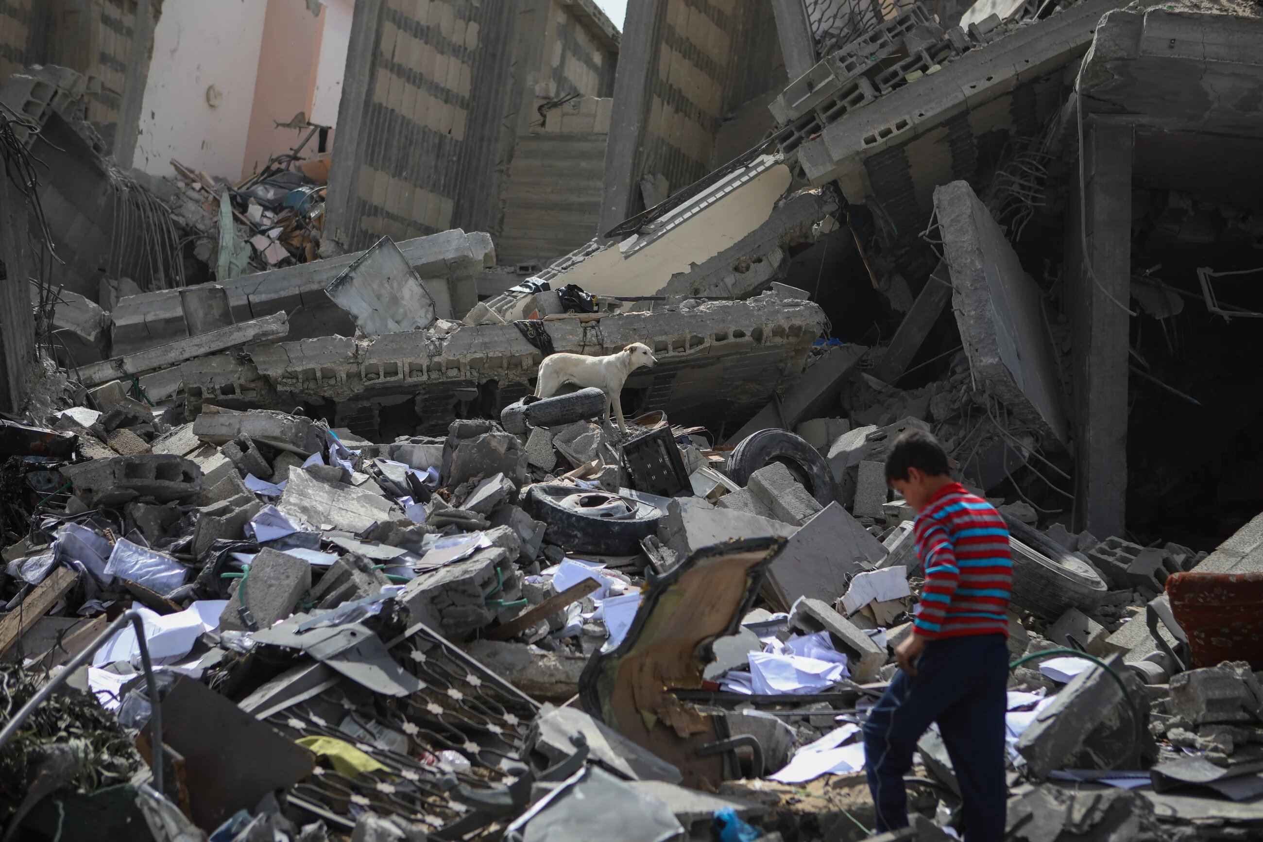 Abu Subhi al-Hazandar is sifting through what remains of the building he and his family once owned. It used to contain homes, businesses, shops and a library, but now it has been completely destroyed. "Today we have nothing. We lost our big house, our memories and our dreams. It is Ramadan and we have nowhere to stay tonight, and I don’t know what we can eat," he tells Middle East Eye. "I try to collect a little of what remains, but not because it’s useful, but because it keeps me from thinking about our tragedy." (MEE/Mohammed al-Hajjar)