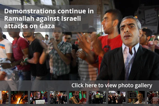 Protests are taking place in Ramallah in solidarity with the people in Gaza who have been subjected to several days of Israeli air-strikes