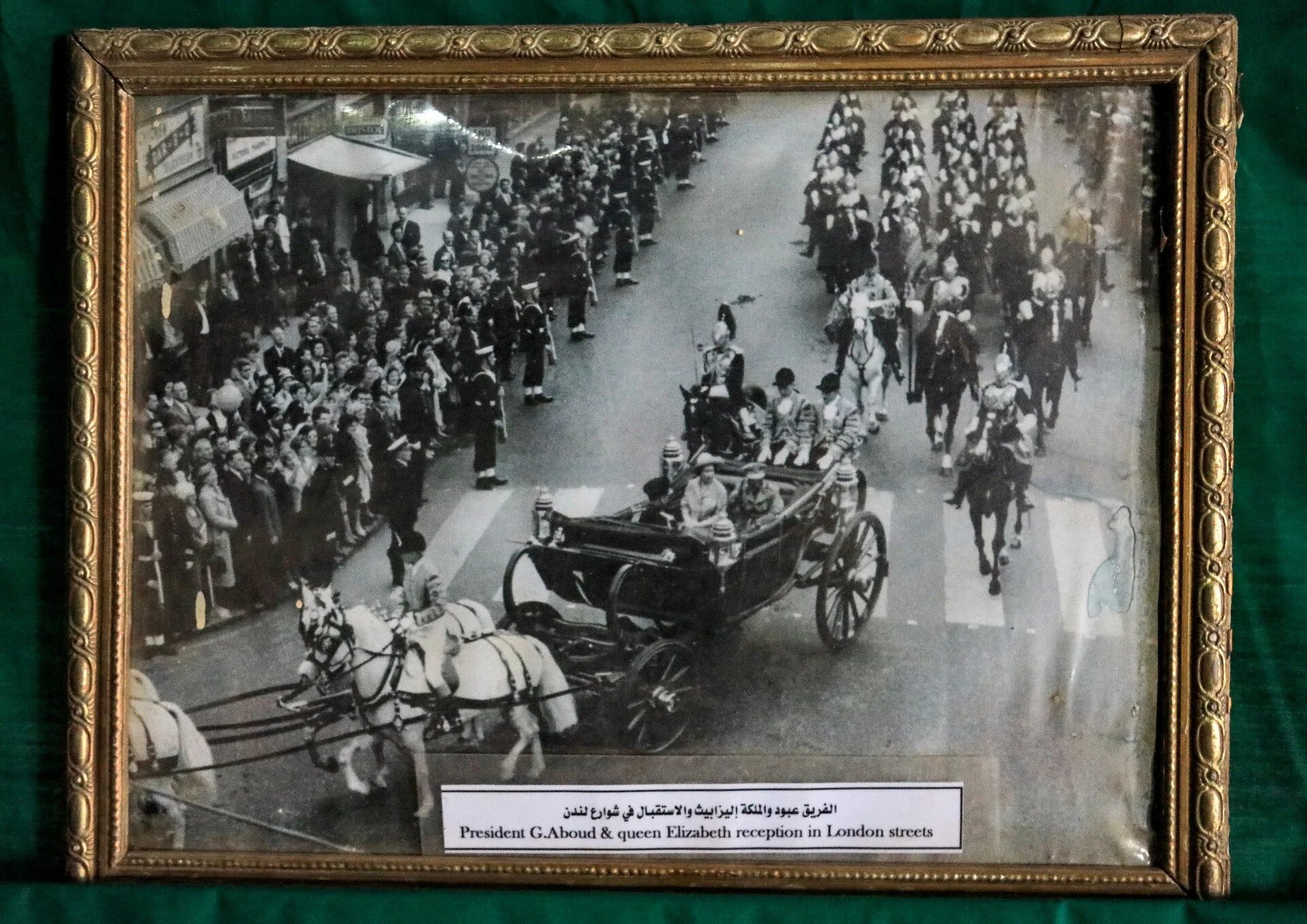 This framed photograph, on display at the Sudanese armed forces general command in the capital, Khartoum, shows Elizabeth II riding in a horse-drawn carriage with Sudan's late president, General Ibrahim Abboud, during his visit to London in 1964 (AFP).