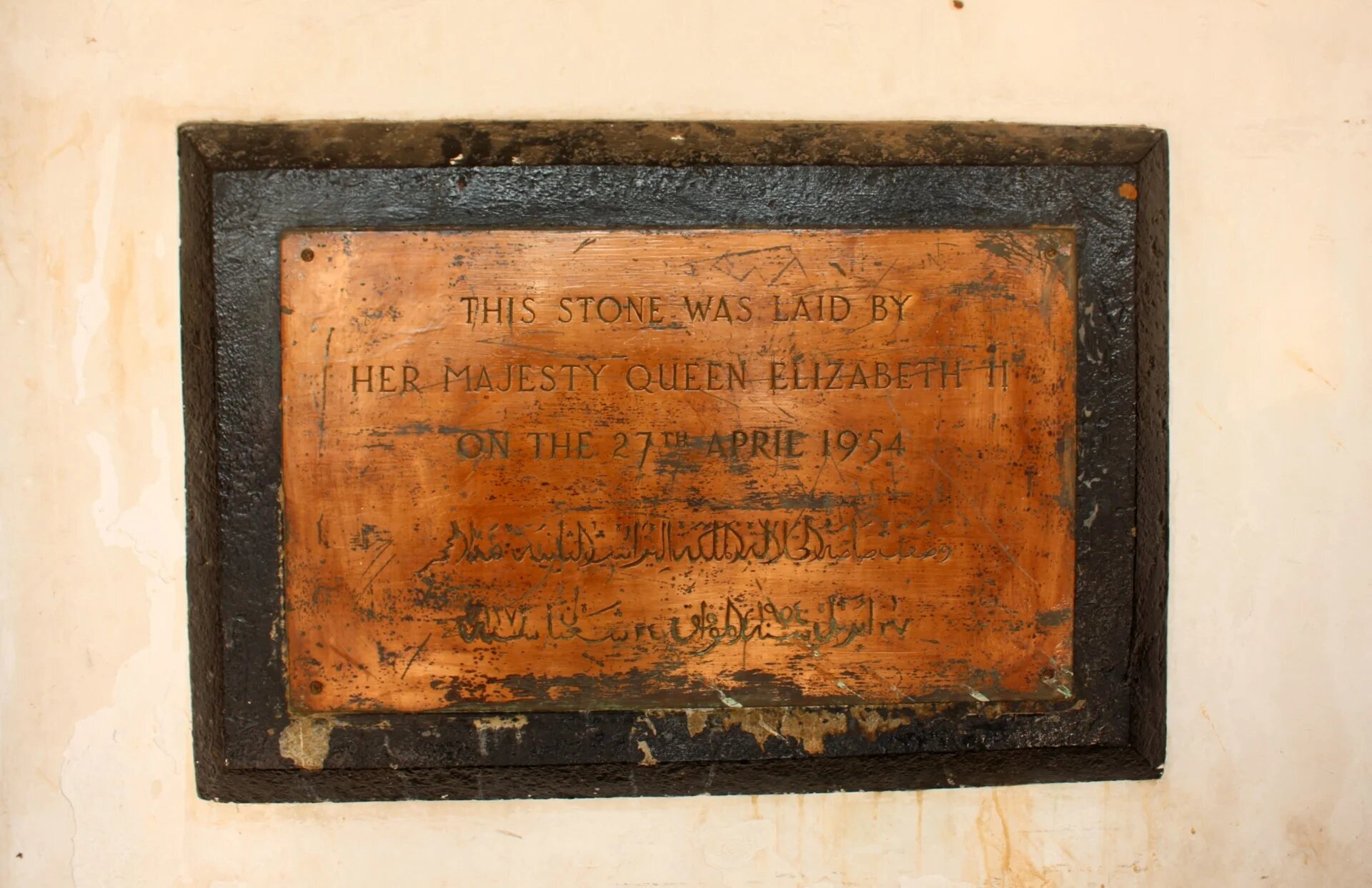 A bronze plaque, pictured in March this year, marks the date on which the queen laid the founding stone at the Al-Joumhouria hospital in the Khor Maksar area of Yemen's southern city of Aden (AFP).