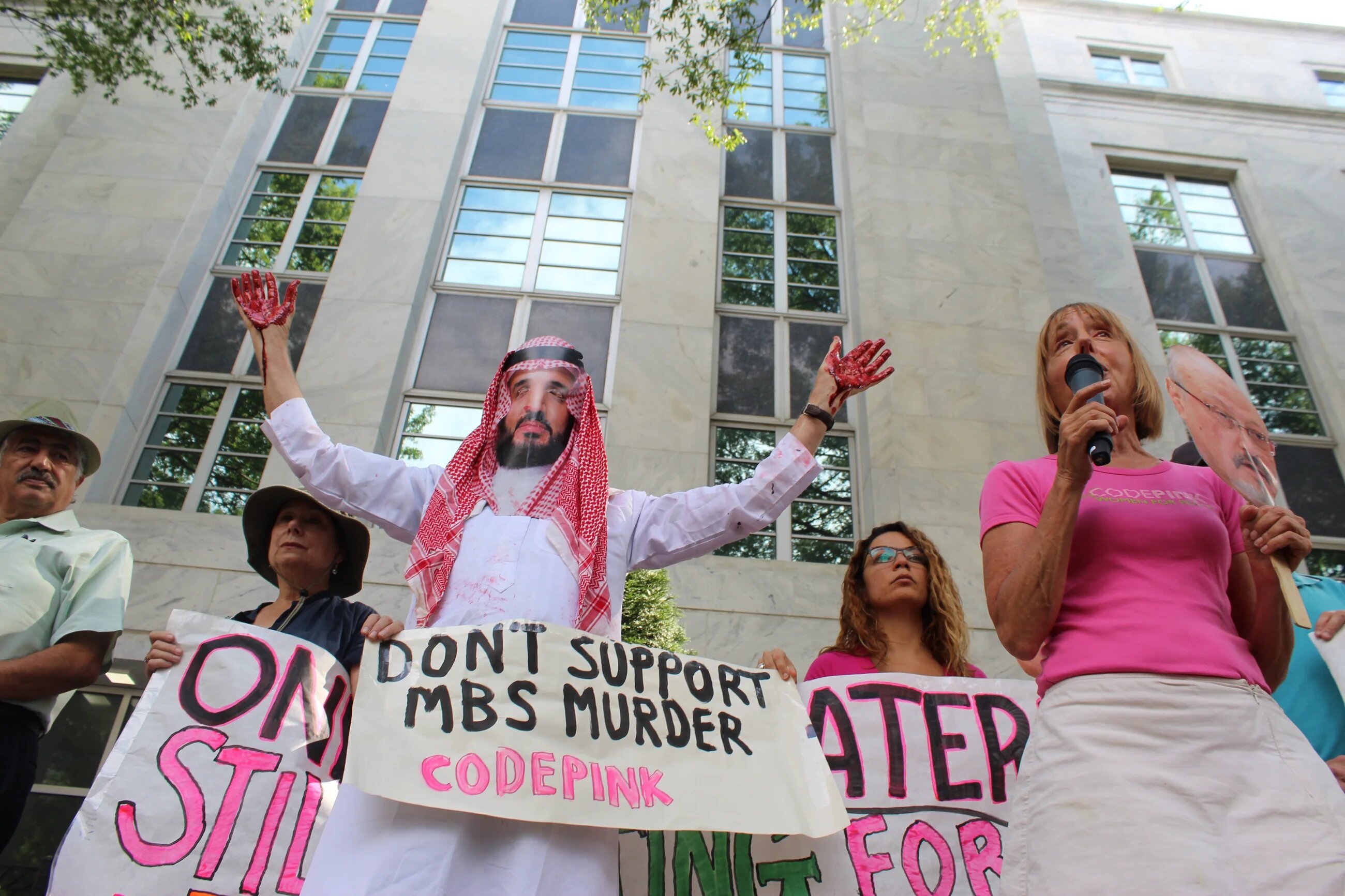Laffin stood in a row of about two dozen protesters chanting slogans about MBS and the Saudi government, demanding the US government act.