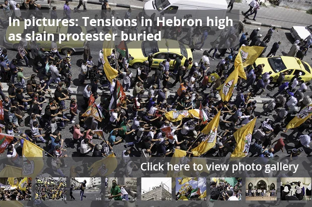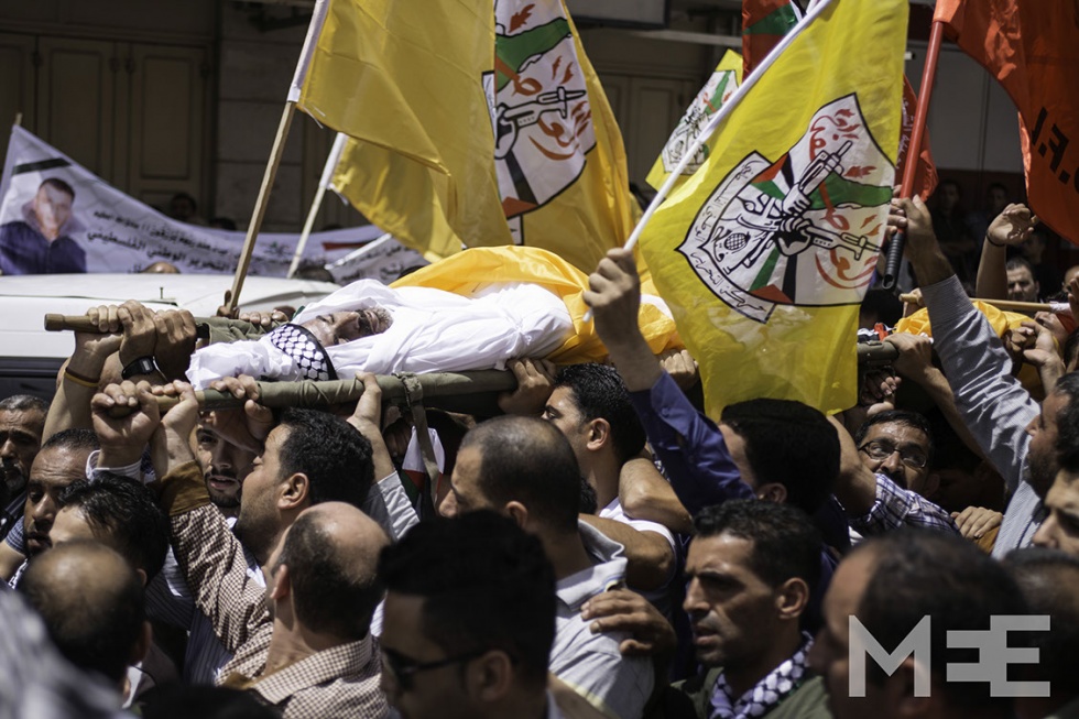 Through a sea of yellow Fateh flags, the body of 40-year-old activist Nader Mohammed Edrees was carried on the shoulders of friends and family into Hebron’s Al Hussein Mosque just after midday, where hundreds assembled to participate in funeral prayers on August 9th. The procession march to the burial site gathered hundreds more along the way, as clusters of men echoed calls to resist Israeli occupation.