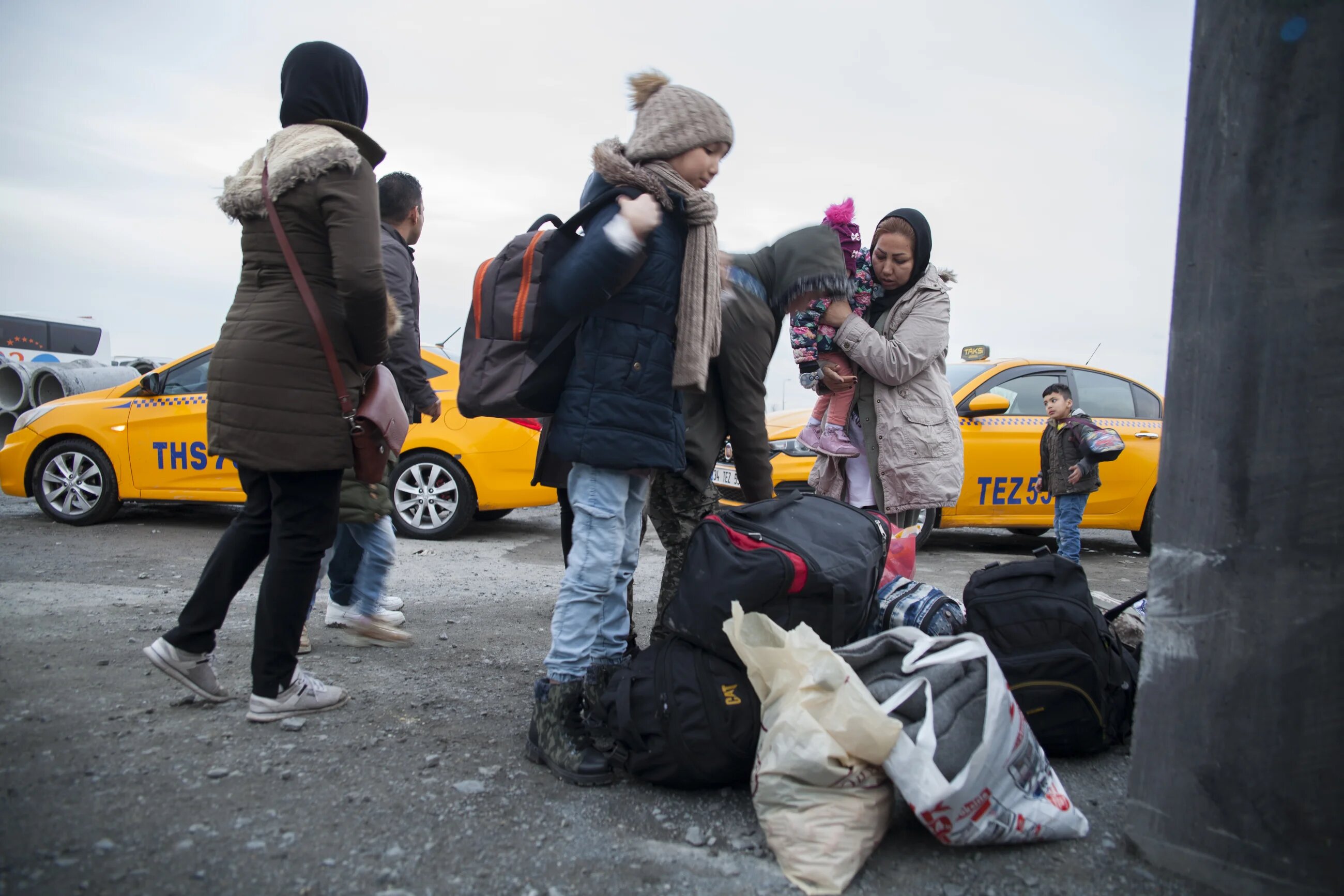 Thousands of refugees who have been sheltering in Turkey for years packed their vital belongings and took buses to the land border with Greece. The majority of refugees trying to enter Greece are from Afghanistan, like this family pictured travelling from Istanbul. However, many other nationalities are represented, including refugees from Iran, Syria, Palestine, Bangladesh and Morocco (MEE/Tessa Fox)