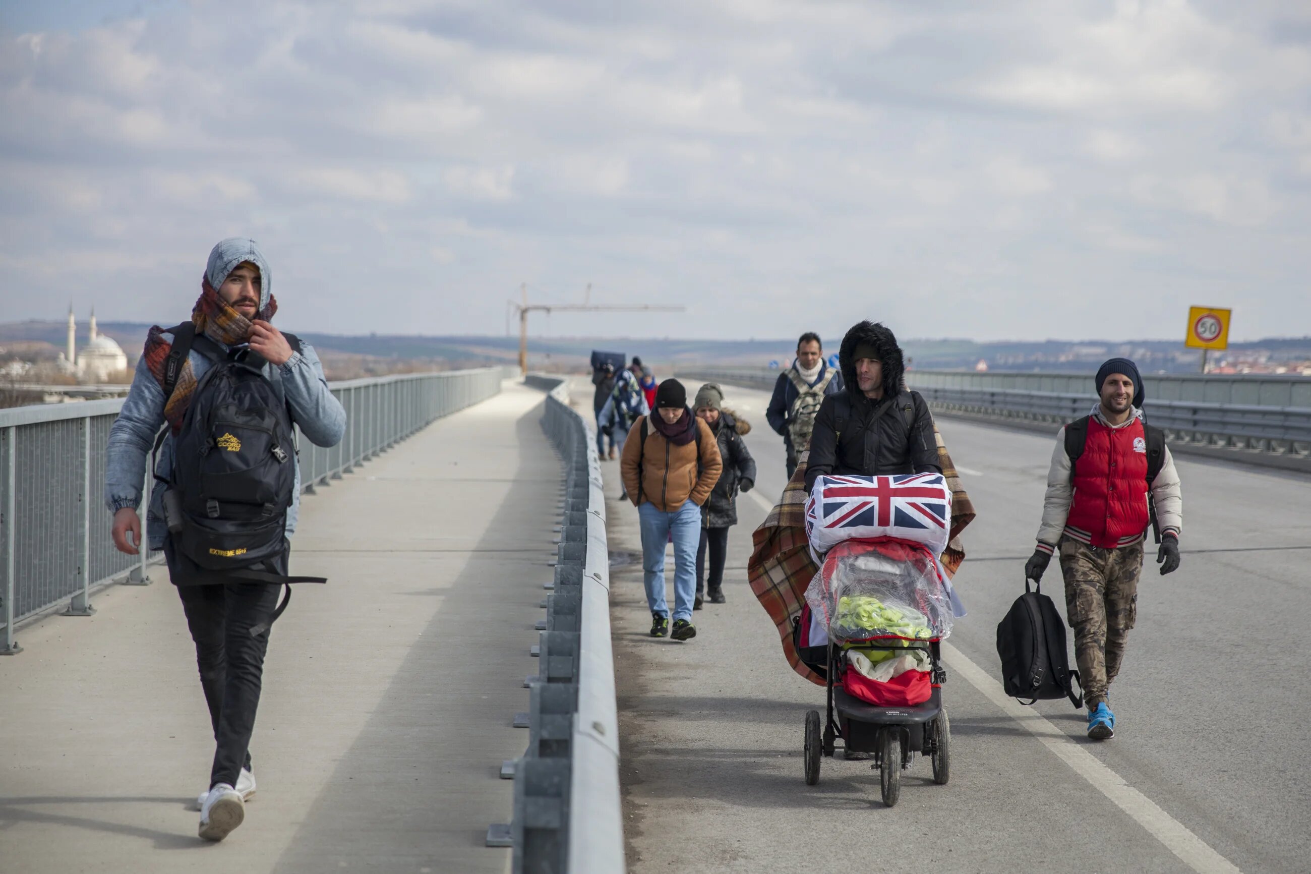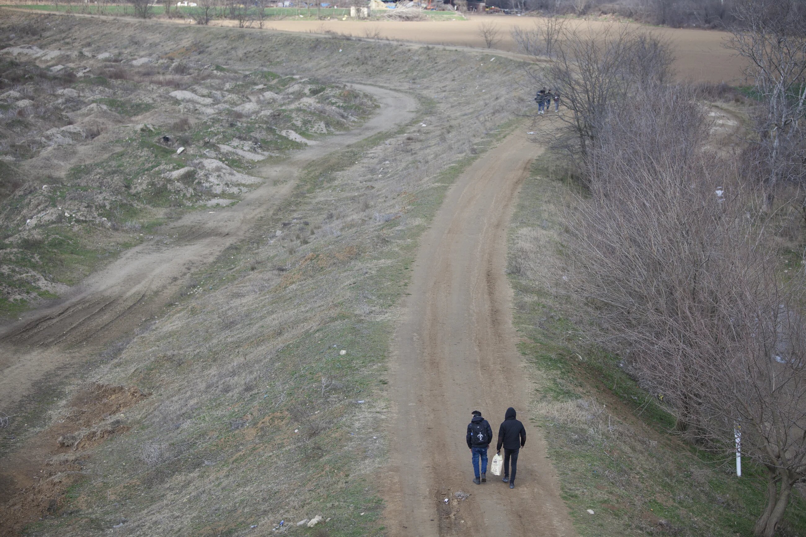 Approaching the Pazarkule border crossing in the north of Turkey, though still some kilometres from the border, groups of refugees are walking to what many think are open gates to Europe. In reality, Greece, as well as neighbouring Bulgaria, continue to seal their borders and have deployed military and riot police to fend off any illegal entry (MEE/Tessa Fox)