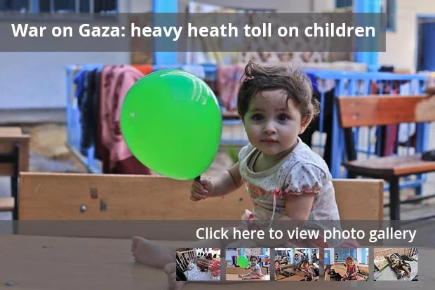 Palestinian children who have been fortunate to escape death during Israel's raids fall victim to illness as a result of displacement