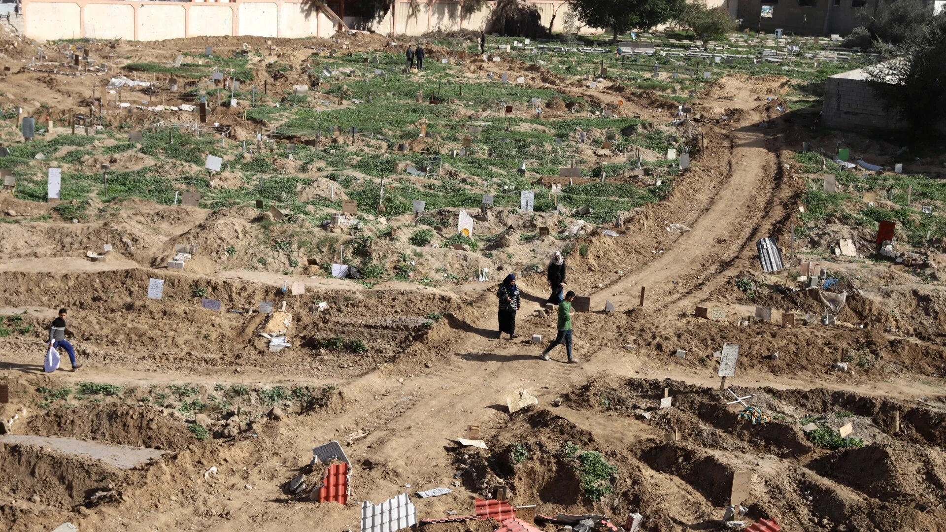 More than 23,000 Palestinian have been killed, more than two thirds of them women and children. In this photo, Palestinian families walk through an overcrowded cemetary in Gaza City to find the resting places of their loved ones (MEE/Mohammed al-Hajjar)