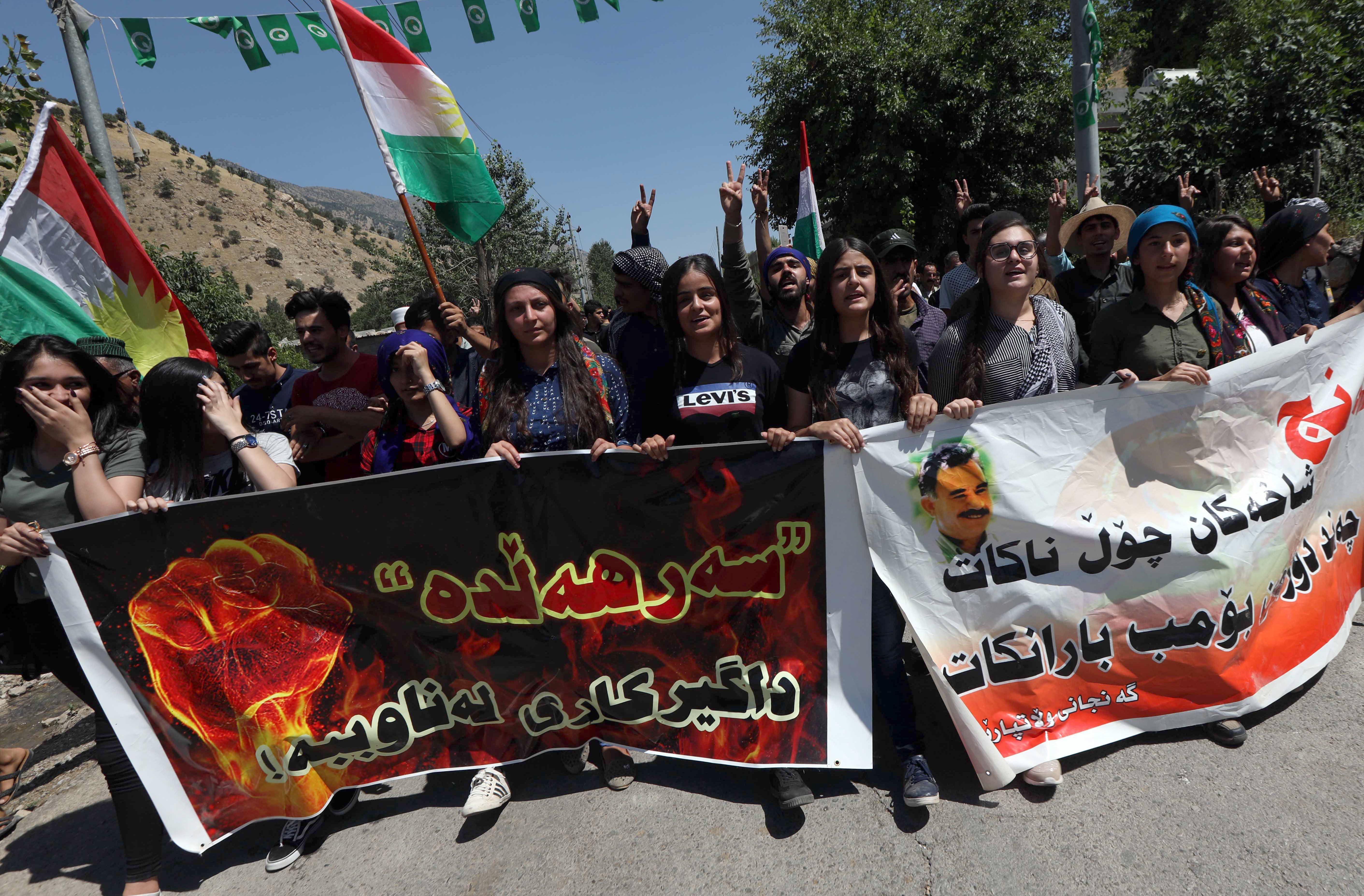 "The PUK [security services] are pressuring us not to continue our movement. We have been warned by locals that a checkpoint would be set up on 29 April to block our way up to Warte and prevent our protest.
