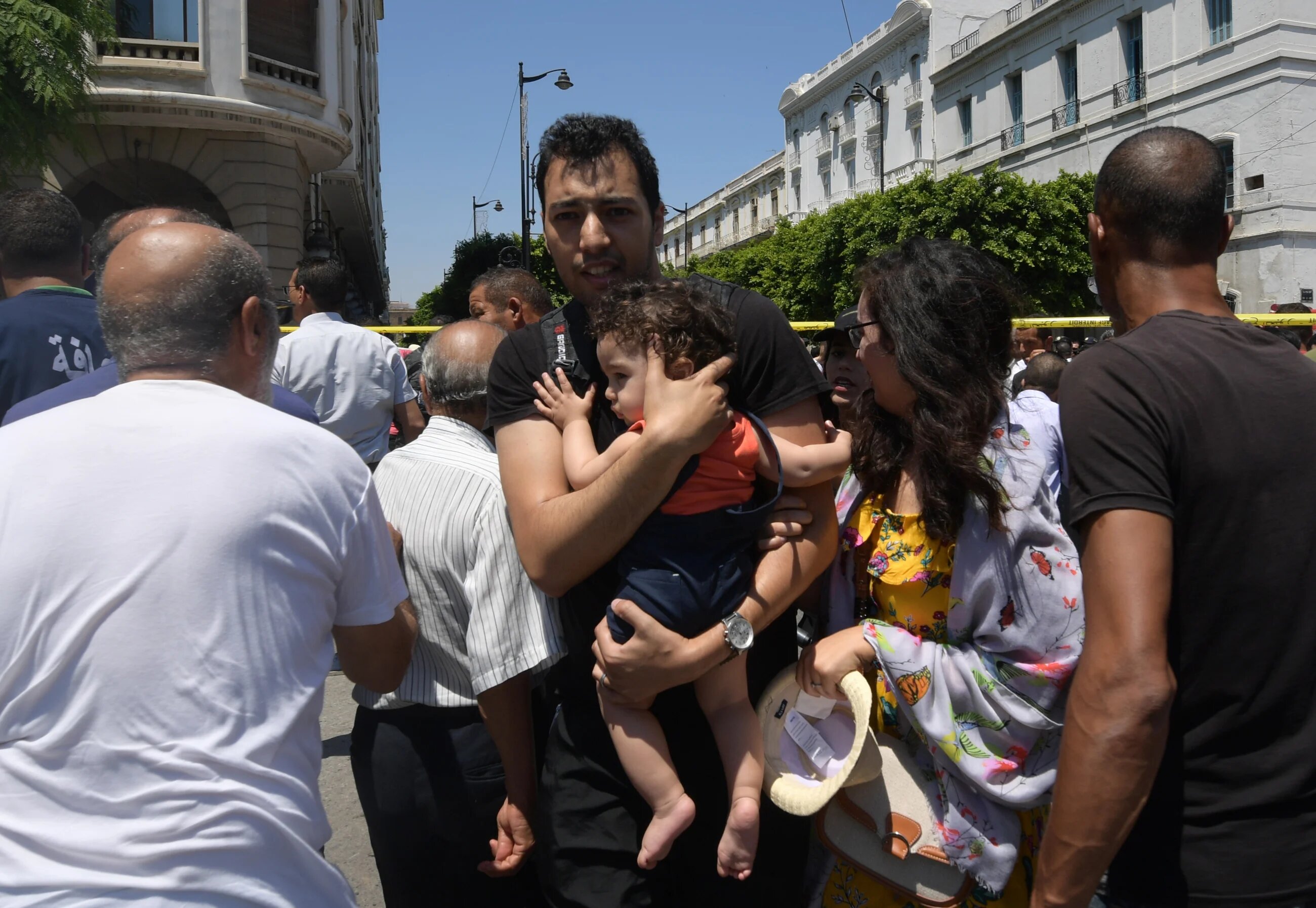 Tunisian civilians react at the site of an attack in the Tunisian capital's main avenue Habib Bourguiba (AFP)